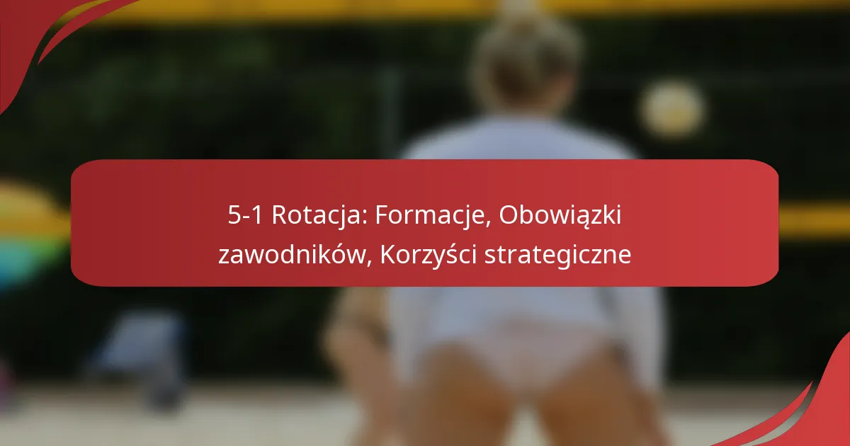 Rotacja 5-1 składa się z pięciu zawodników zajmujących stałe pozycje na boisku, podczas gdy jeden zawodnik, często rozgrywający lub playmaker, rotuje przez te pozycje. Taki układ pozwala na zrównoważony atak i zapewnia, że zespół może utrzymać silną obronę. Zawodnik w roli rotującej jest kluczowy, ponieważ ułatwia akcje i skutecznie rozprowadza piłkę.
