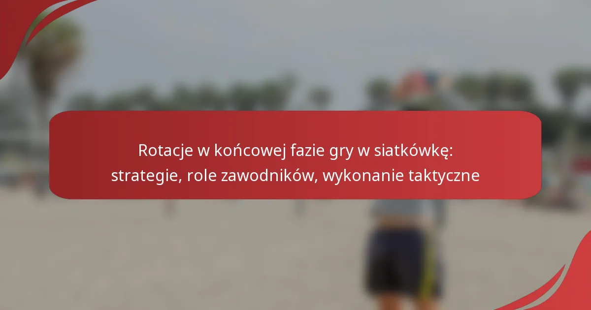Rotacje końcowe w siatkówce są kluczowe dla optymalizacji wydajności zespołu w decydujących momentach meczu. Poprzez strategiczne ustawienie zawodników i wyraźne określenie ich ról, zespoły mogą wykorzystać swoje mocne strony i przeciwdziałać słabościom, co znacząco wpływa na wynik gry. Skuteczne wykonanie tych rotacji wymaga płynnej komunikacji i zdolności do dostosowywania się do taktyki przeciwnika.