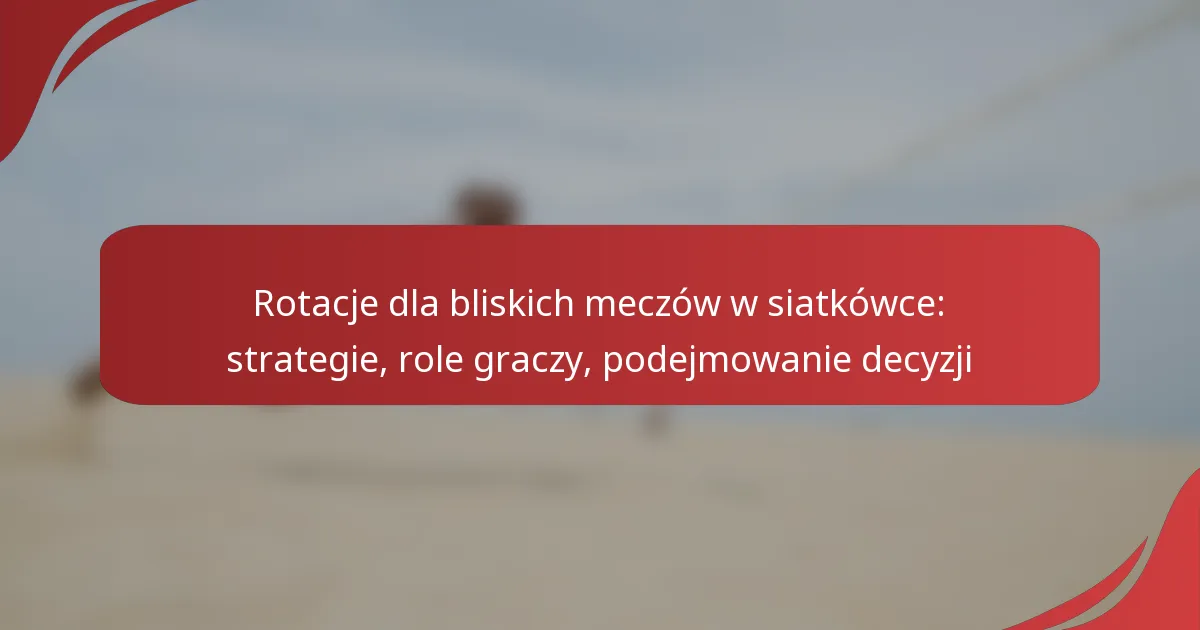 W bliskich meczach siatkarskich skuteczne strategie rotacji są niezbędne do maksymalizacji mocnych stron zespołu i minimalizacji słabości. Każdy zawodnik ma określoną rolę, która przyczynia się zarówno do taktyki ofensywnej, jak i defensywnej, co sprawia, że zrozumienie tych dynamik jest kluczowe dla drużyn. Strategiczne podejmowanie decyzji, oparte na obserwacjach w czasie rzeczywistym i wydajności zawodników, pozwala trenerom i graczom dostosować swoje rotacje i zwiększyć szanse na sukces.
